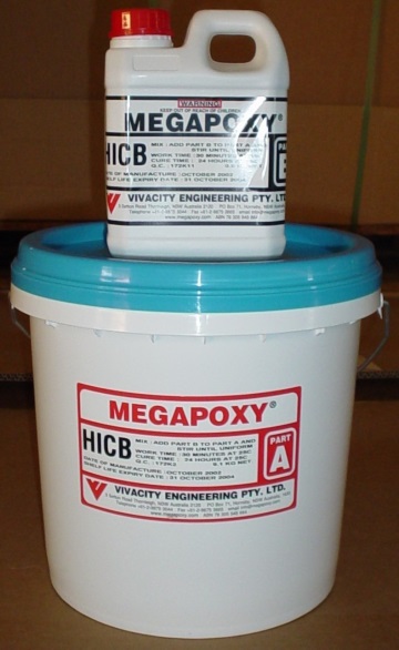 MEGAPOXY HIGH IMPACT CRUSHER BACKING (HICB) consists of Part A & Part B liquid epoxy grout.